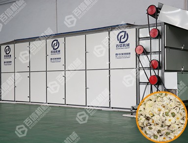 #百信機(jī)械金銀花烘干機(jī)技術(shù)常識(shí)早知道:金銀花烘干機(jī)采用網(wǎng)帶式烘干機(jī)是一種批量、連續(xù)式生產(chǎn)的干燥設(shè)備,主要用于片狀、條狀、顆粒狀物料的干燥。需要烘干的金銀花通過輸送機(jī)直接輸送到平板輸送機(jī)上,通過平板輸送機(jī)上端的刮板將金銀花勻布在烘干機(jī)上,提高成品的透氣性,達(dá)到烘干效果,可保證所有設(shè)備的連續(xù)生產(chǎn),可實(shí)現(xiàn)溫度的自動(dòng)控制和手動(dòng)控制,傳動(dòng)速度可實(shí)現(xiàn)無級調(diào)速。金銀花烘干機(jī)適合于多種物料的烘干、脫水、固化。